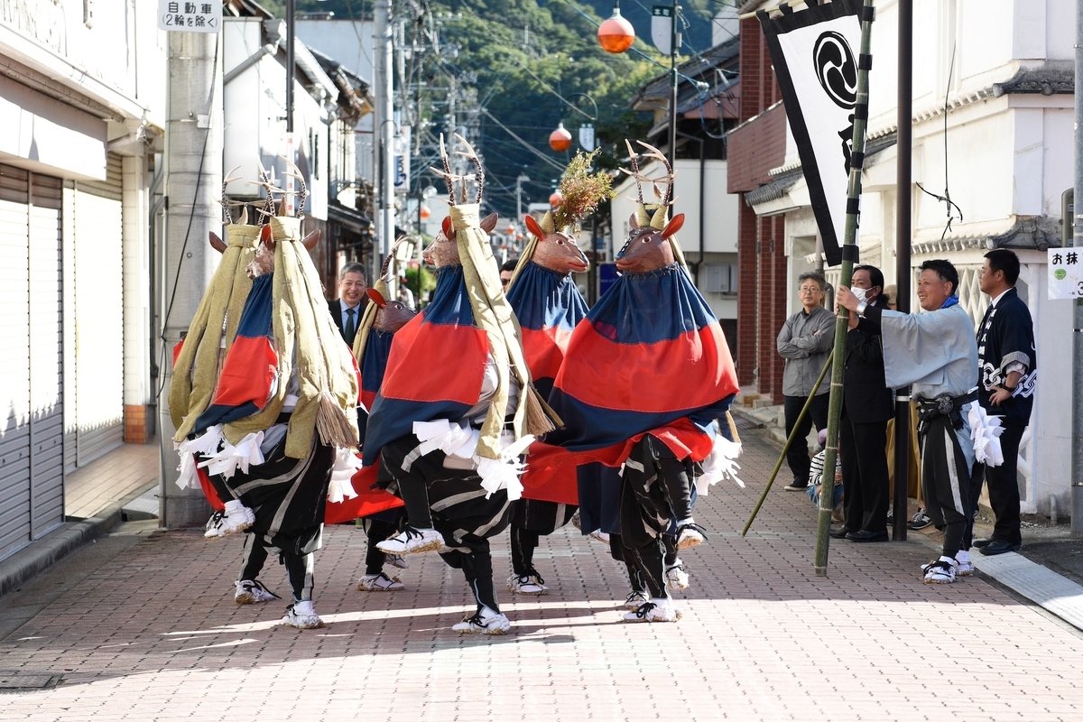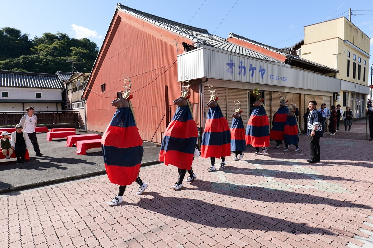 鹿の子はとても拝見したい芸能だったものの、実際のところあまり拝見できなかった。最初にこの街に到着したときに、鹿の子が家やお店を一軒一軒門付けしている姿を拝見して、とてもゆっくりと風雅に無表情に舞う姿がとても印象的だった。最後に一礼をして次の建物に向かうときも律儀に一列になってて移動するのである。