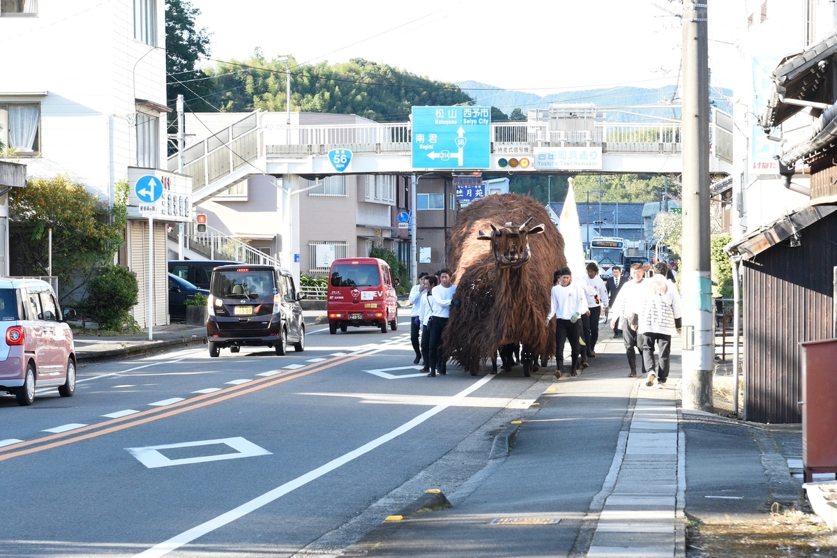 この行事は2025年3月28日、国指定重要無形民俗文化財に指定されたばかりの行事である。吉田のお練りについて、一説によると寛文4年(1664年)に始まると言われる。江戸時代の1835年製作の祭礼絵巻が残されており、絵巻の様子と変化が少ないまま、現在に伝承されている点が珍しいとされる。毎年11月2日、3日で開催され、2日は八幡神社の例祭、伊勢踊りの奉納など。3日は卯之刻相撲、神輿の蔵出し、楠木正成・太閤秀吉・武内宿禰などの人形を乗せた屋台によるお練りなどが開催される。その中で、牛鬼、ホタ、鹿の子なども登場する。四国有数の大規模祭礼に向けて旅立った。