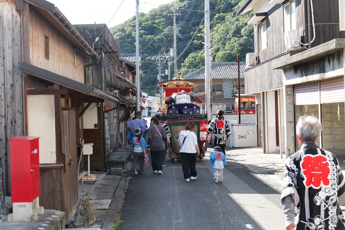 ただ、そこまで詳しく見なかったのは、最後の宮入りでガッツリ見られることをどこかで期待していたからである。住吉神社での宮入りを待った。問い合わせた時間だと16時から鹿の子が実施するらしく、パンフレットにもそう書いてあったが、なかなか来ない。それで担い手に確認したところ、なぜかもともと18時前にやる予定だったことが判明。図書館での資料収集もしたかったので、泣く泣く宮入りを拝見することを断念した。商店街を回るところを一瞬拝見しただけで終わってしまったが、もうしょうがない。こういうこともあるものだ。